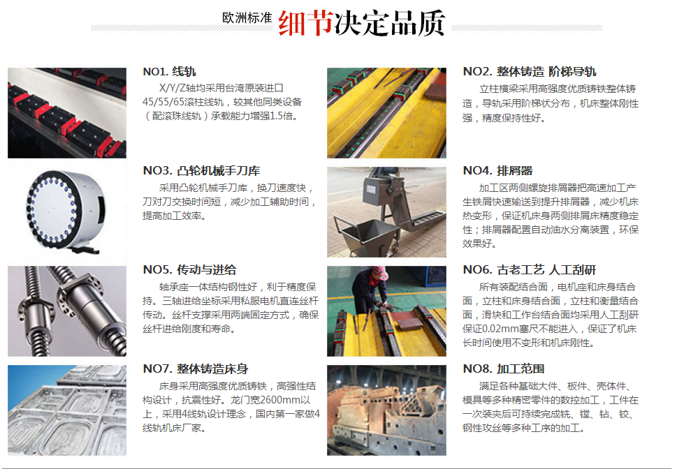 4、大件:機床(chuang)大件包括(kuo)床身、工作(zuò)台、立柱、、橫(héng)梁、銑頭溜(liū)🏃🏻♂️闆、銑頭滑(hua)枕📞、銑頭。